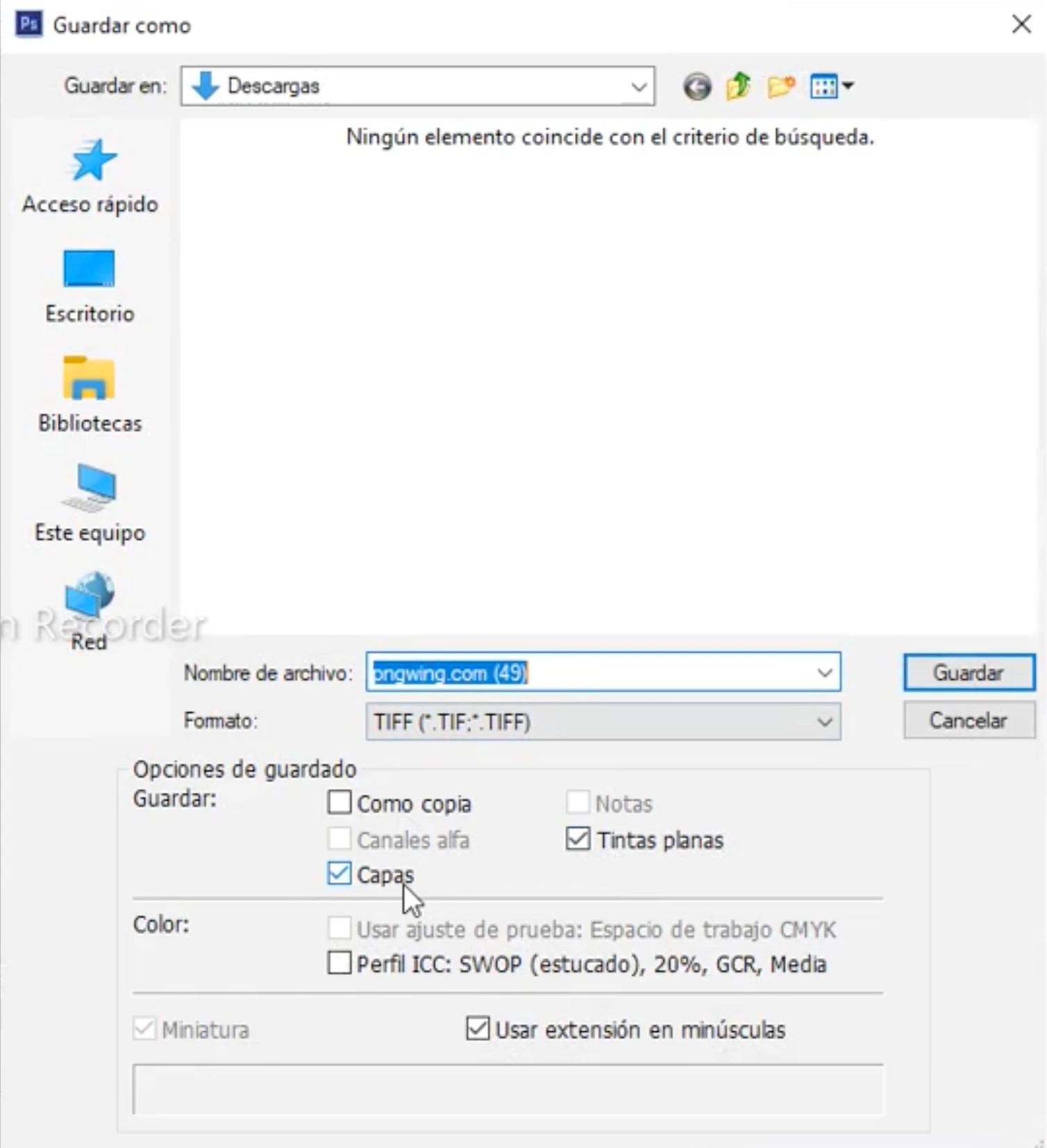 Importante guardar en tiff., opciones de guardado Capaz & Tinta Plana.